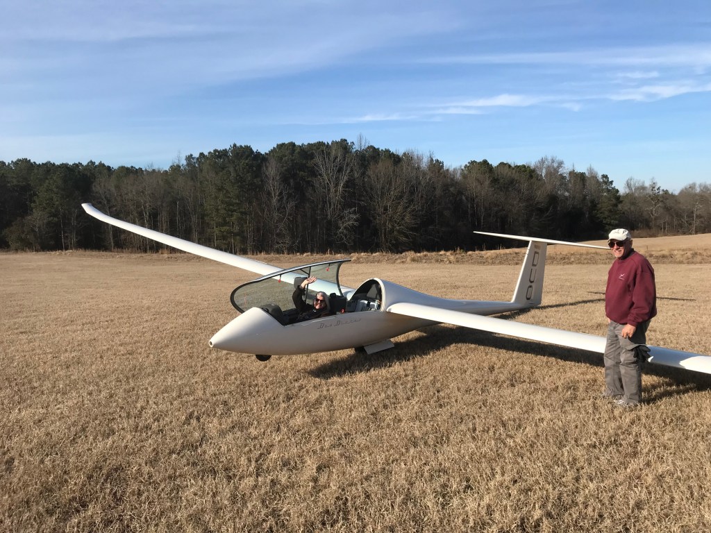 One of my favorite moments: For my seventieth birthday, my sweet husband arranged a weekend at Kilburnie, a lovely B and B near Lancaster, SC. This included flying in a glider for nearly an hour – soaring and circling over the farms below. We could see the tiniest view of the Charlotte skyline. That’s my pilot standing at the wingtip. He was sitting behind me so I had an amazing, clear sightline up with the eagles. We let loose the cable to the tow-plane at 3,000 feet. It was breath-taking and peaceful at the same time. So beautiful. Thanks, Murdoch. You are the love of my life.